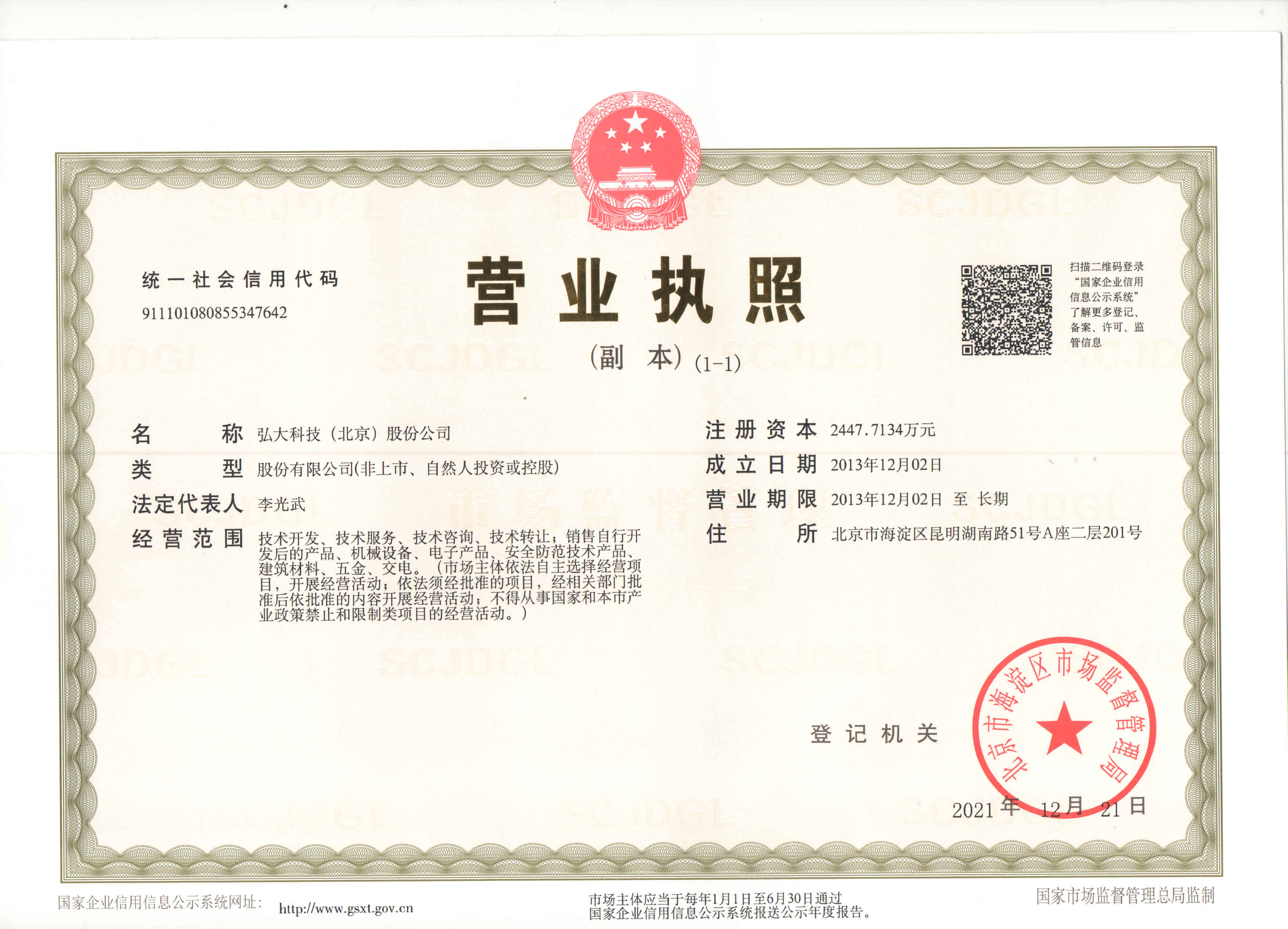 弘大科技(北京)股份公司 保留一切權(quán)利